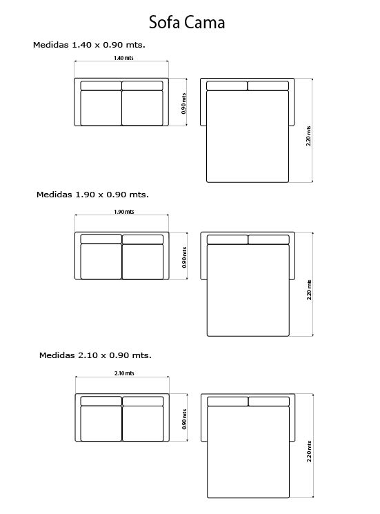 Medidas: 1.40 x 0.90 mts / 1.90 x 0.90 mts / 2.10 x 0.90 mts